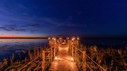 A remote Delta island camp offering elevated suites, water-based safaris, and striking design.