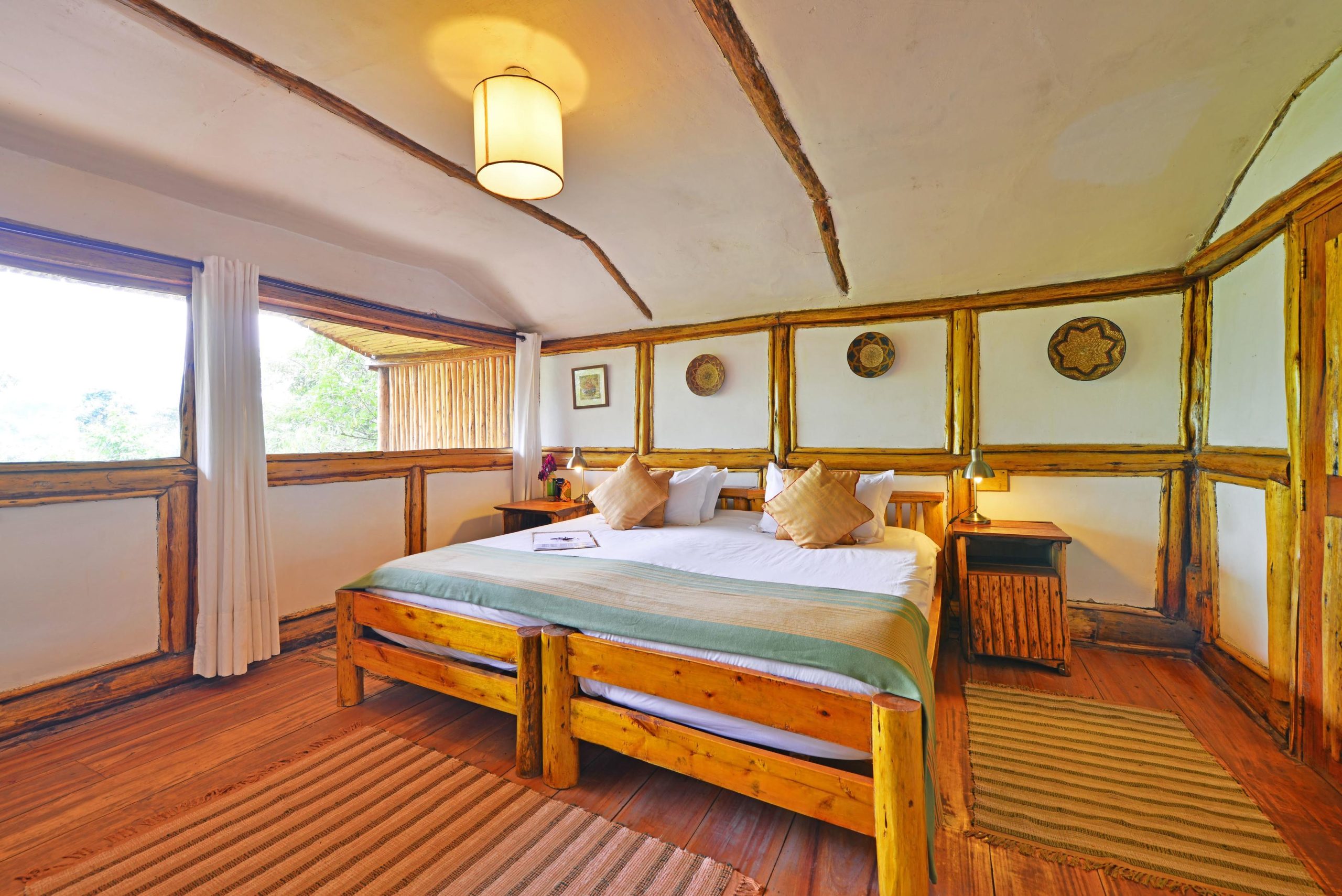 Overlooking the crater lakes near Kibale Forest, this newly built lodge showcases elegant bandas crafted by Ugandan artisans. With a pool, spa, and sauna, it offers a level of comfort rare in this remote region. Days are spent tracking chimpanzees in the nearby forest, birding, or engaging with local conservation projects run by the Volcanoes Safaris Partnership Trust. Only eight bandas ensure a sense of privacy, while verandas open to wide views across the lakes and forests.