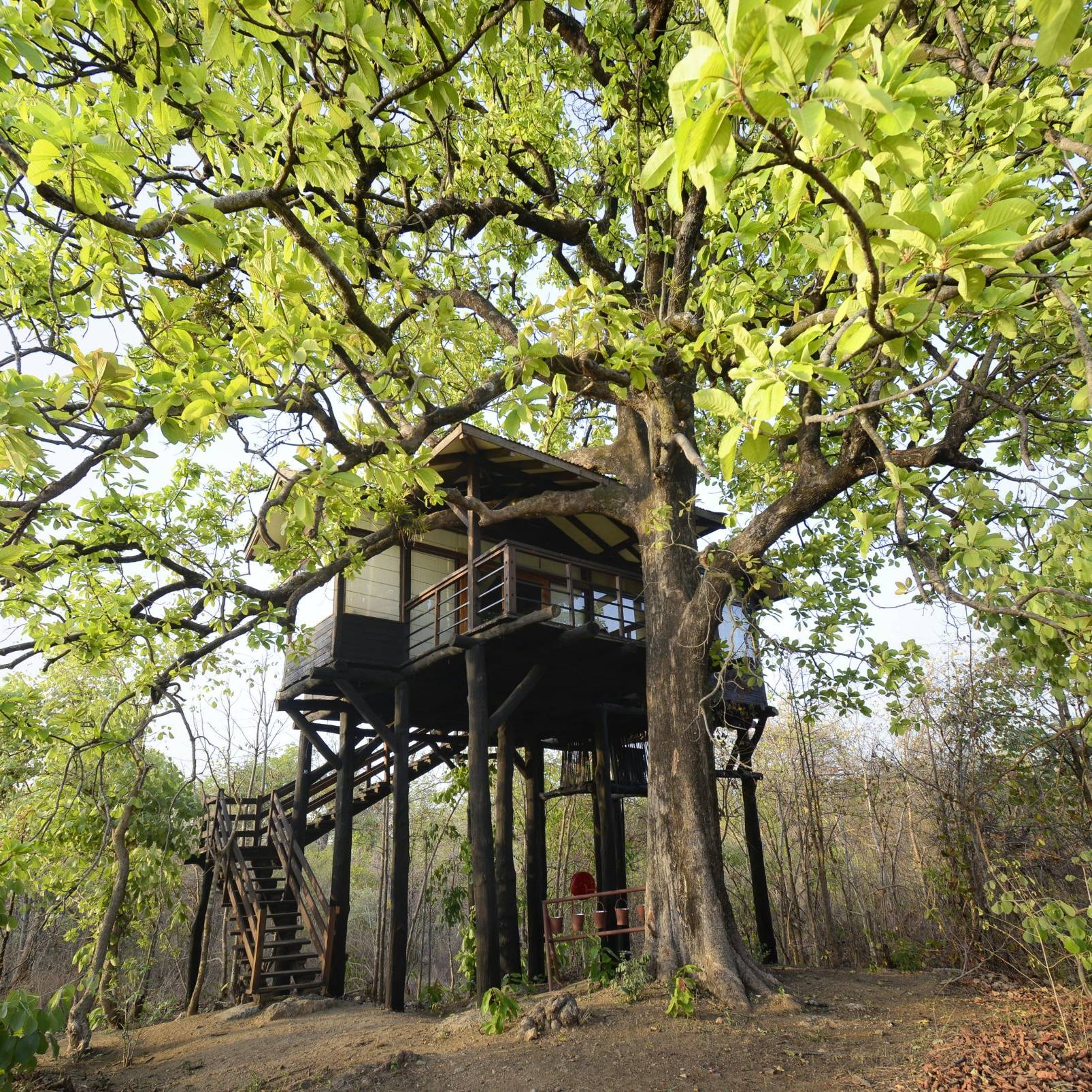 conservation policy of spreading the benefits of tourism far & beyond. The objective is not to overcrowd areas & make them unsustainable. Pench Tree Lodge has passionately worked towards rewilding the 40 acres of its land are with local flora which today is home to several birds and animals. With only 6 tree houses & 10 cottages it has kept a minimum footprint and conservation remains a top priority and is the most unique wildlife resort in Pench.