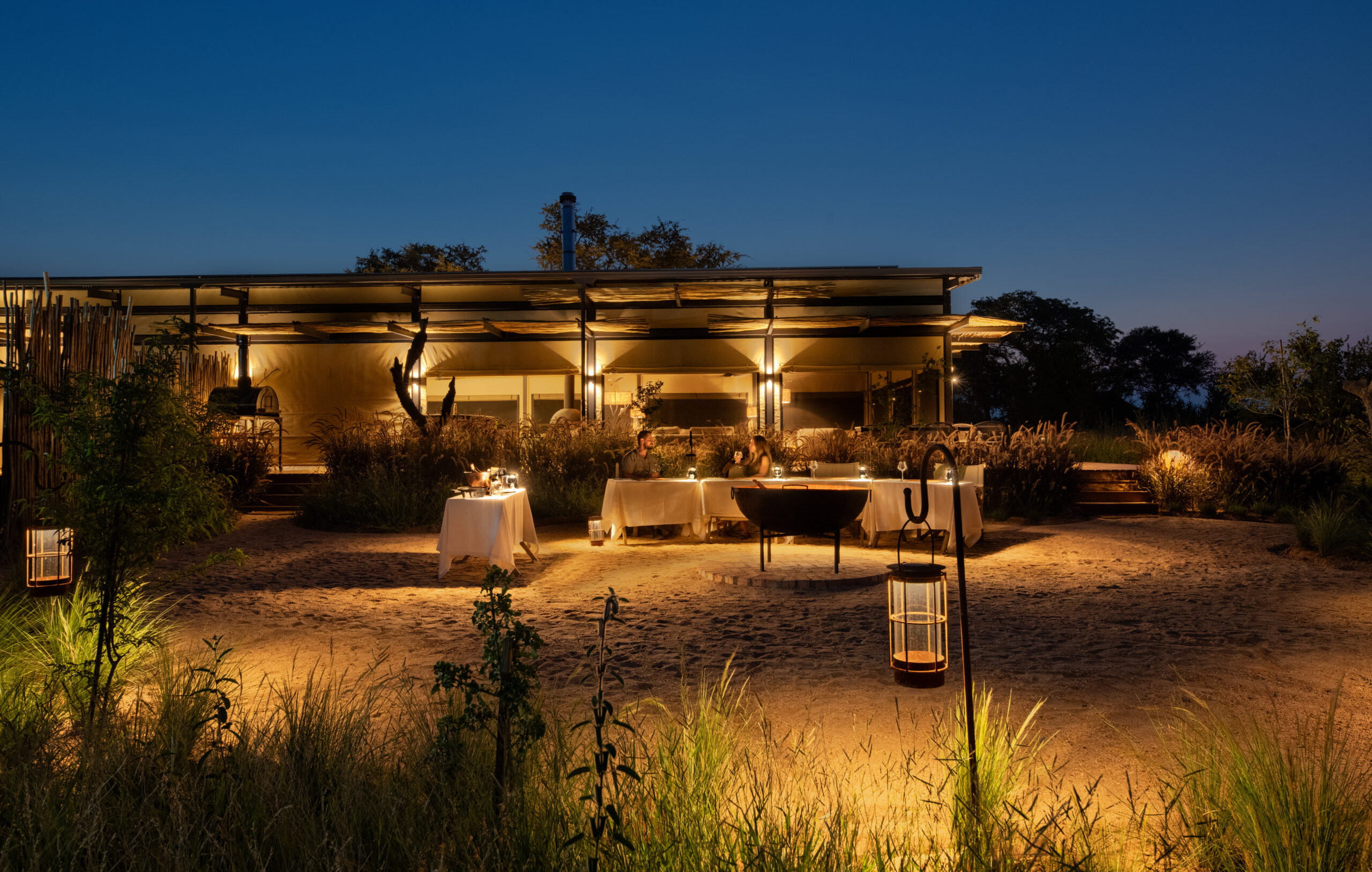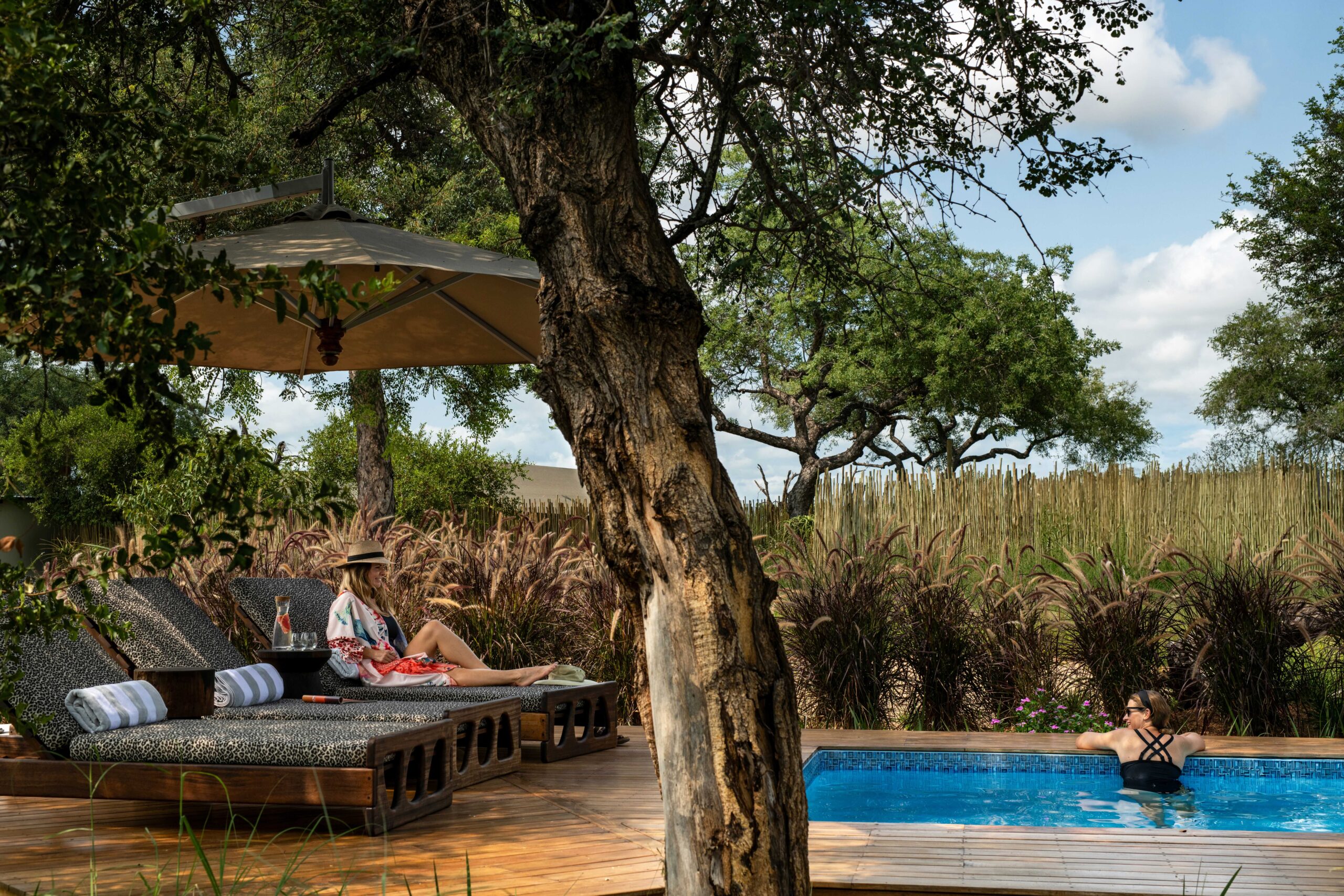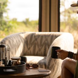 be spent at the pool. Lunch is served with sweeping views of the landscape, followed by relaxation time before the afternoon game drive. As the sun sets, enjoy sundowners in the bush before returning for an exquisite dinner, stargazing, and storytelling by the fire.