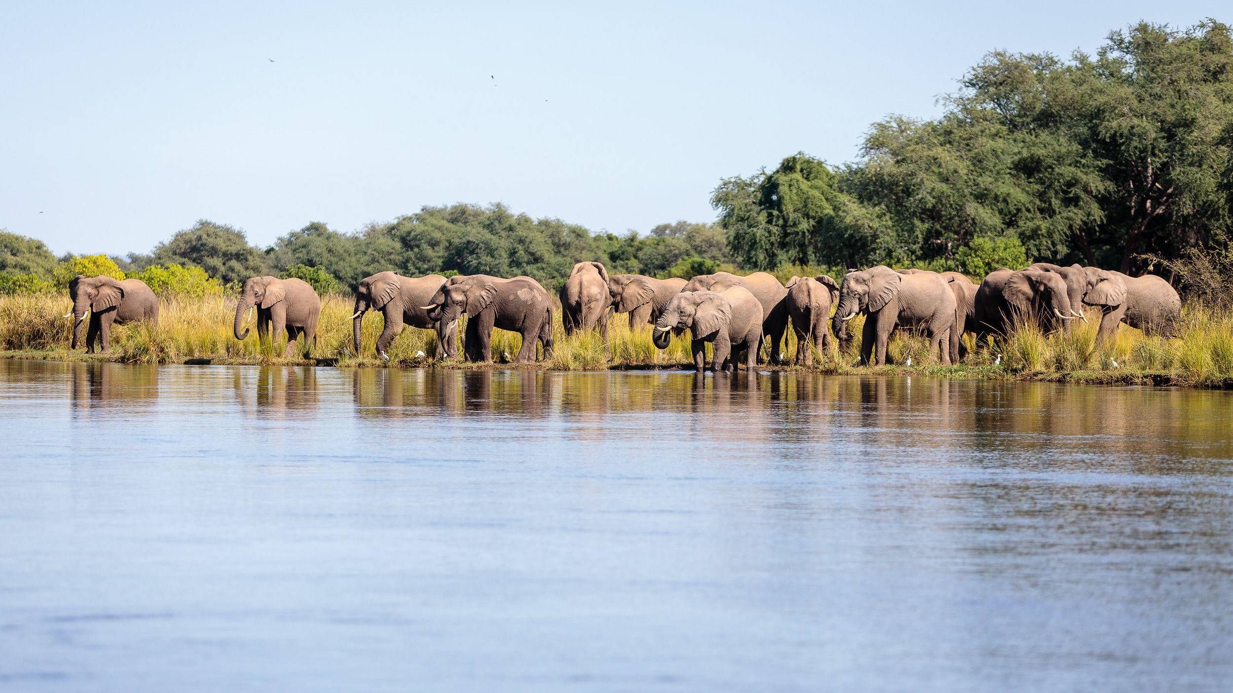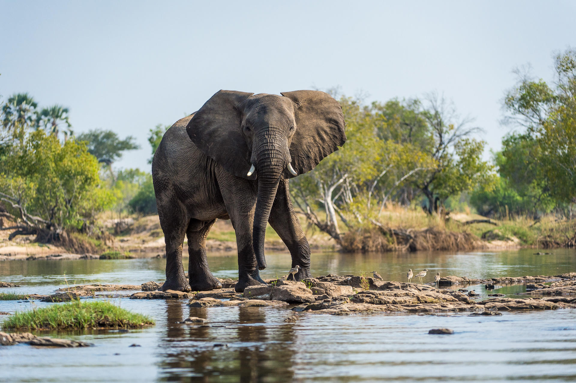 Zambia is a safari for the wilderness. South Luangwa National Park, the birthplace of the walking safari, delivers immersive encounters, tracking elephants along river loops by day and then enjoying some of the best leopard viewing in Africa. To the west, Kafue National Park sprawls across diverse habitats: open Busanga floodplains with their herds of red lechwe, roan antelope, puddle-jumping lions, and miombo woodlands that feel truly untamed. Lower Zambezi National Park offers a different pace, canoeing past basking crocodiles, enjoying herds of elephant feeding in the ghostly ana-tree forests, and fishing for tigerfish under the watch of fish eagles.
