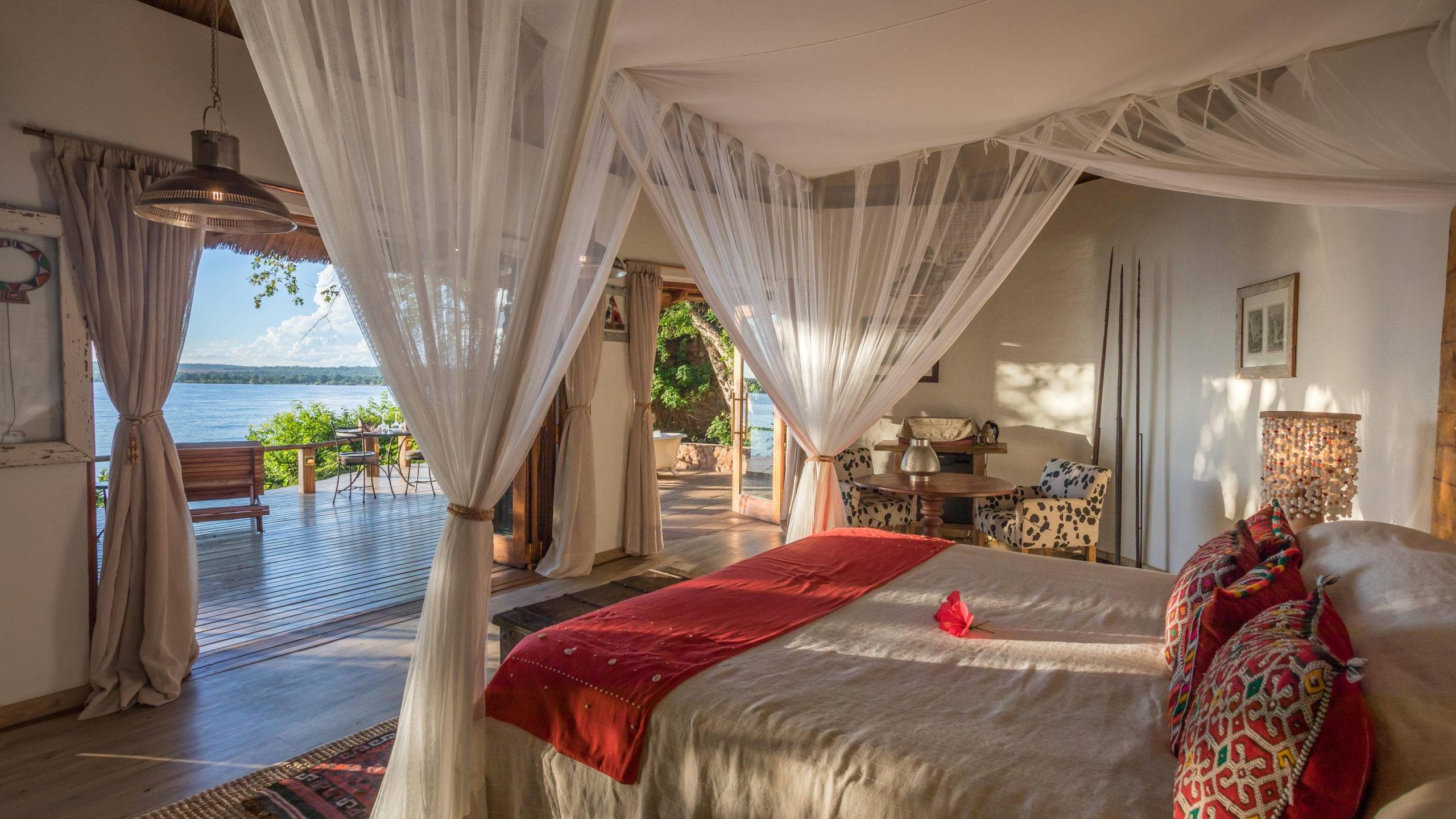 Set on the Zambezi upstream of the Falls, this lodge offers river safaris, rhino tracking, and easy access to Mosi-oa-Tunya National Park.